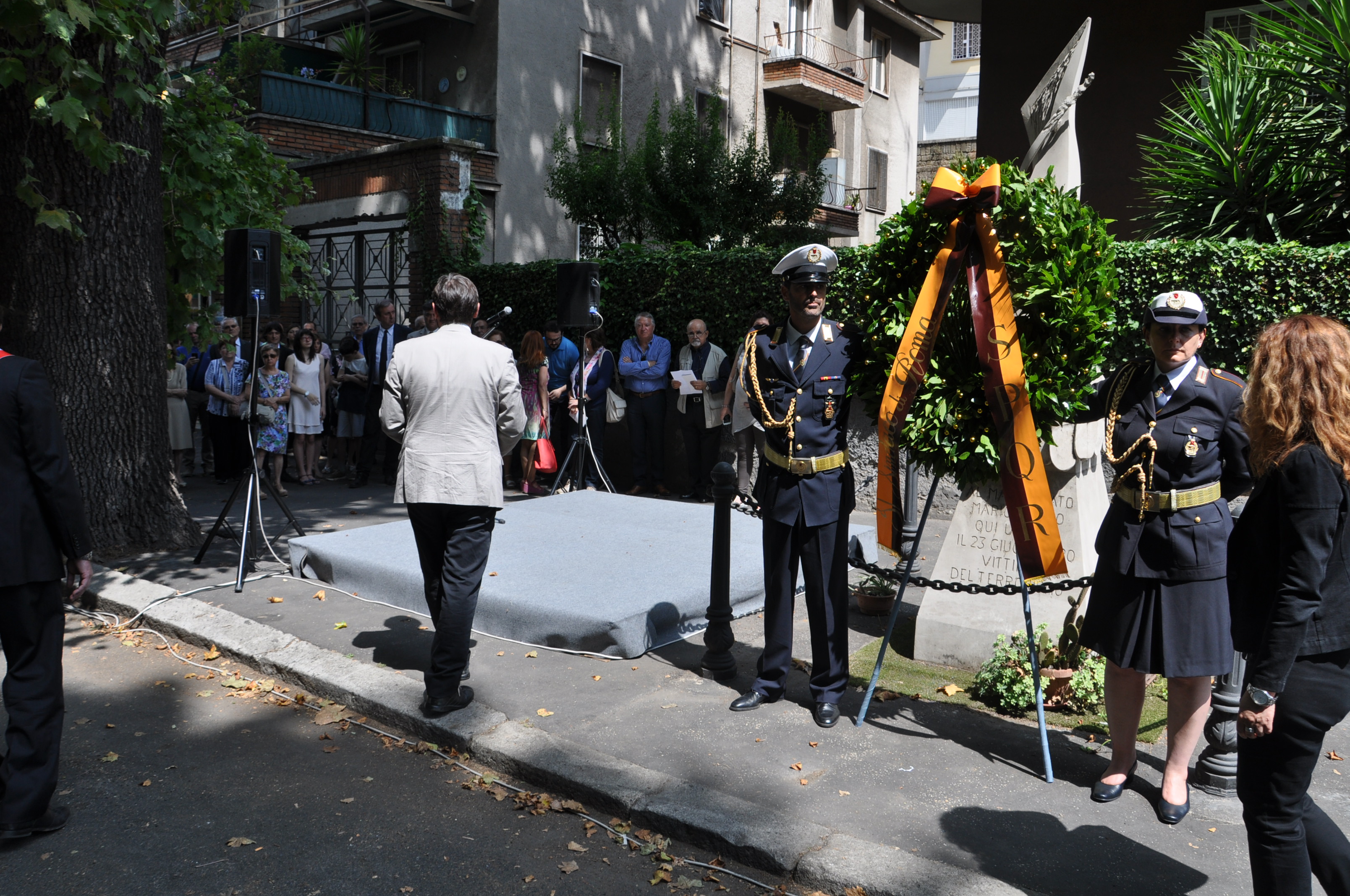 Roberta Capoccioni, il presidente del Consiglio Municipale Mario Novelli, l’assessore municipale all’Ambiente Mimmo D’Orazio, la consigliera di maggioranza Daniela Michelangeli e rappresentanti delle Forze dell’Ordine in servizio e in congedo tra cui il Luogotenente dei Carabinieri Salvatore Veltri che dei cosiddetti Anni di Piombo fu tra i protagonisti sul fronte istituzionale (oltre ad essere tra i primi a giungere sul luogo dell’omicidio nel 1982). «Questo è il secondo anno in cui in qualità di rappresentante delle