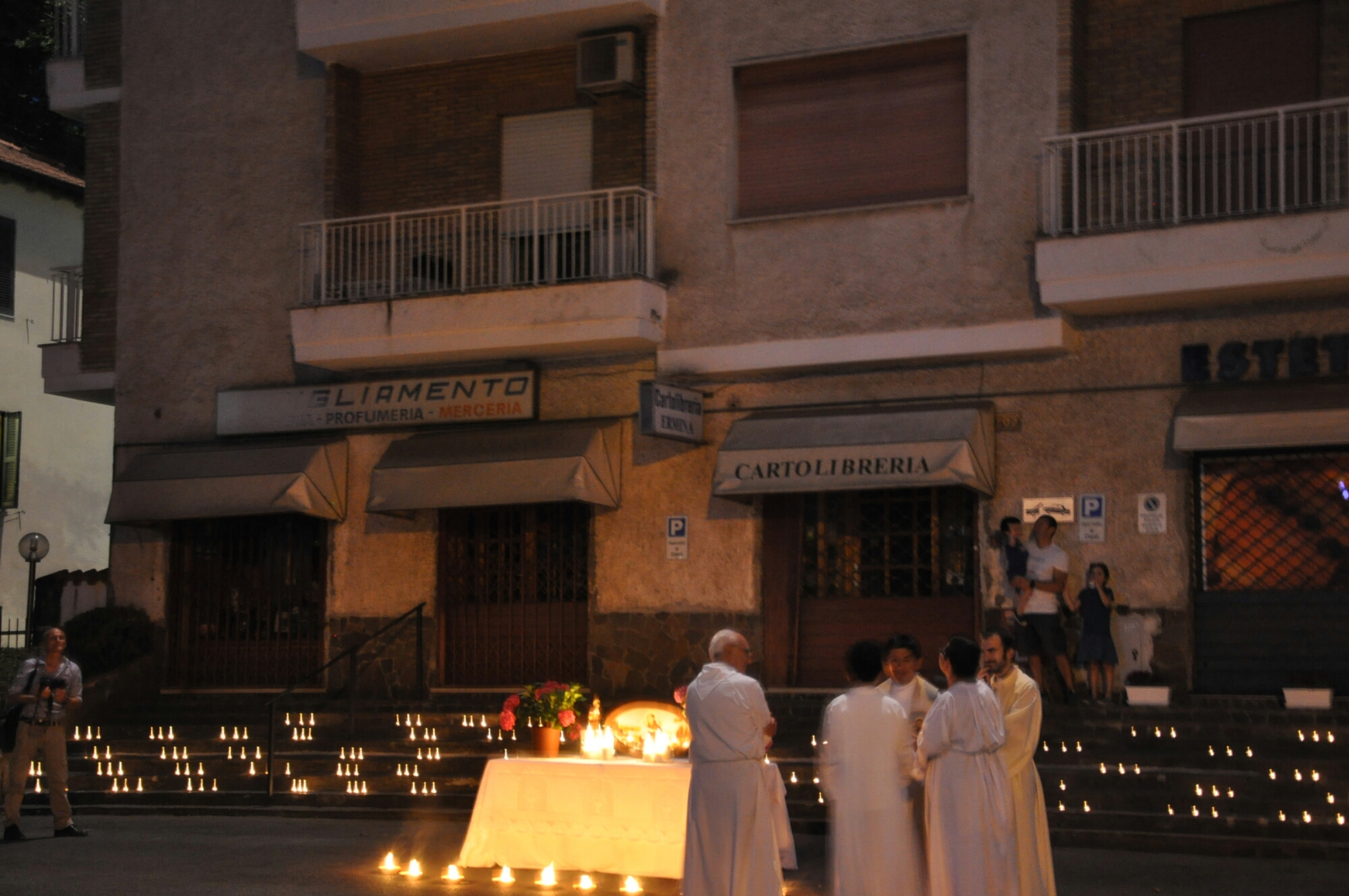 Verdi e guidato dal parroco Padre Ruben si è inerpicato su via delle Lucarie nella parte collinare dell’ex borgata, transitando davanti a improvvisati altarini preparati da devoti residenti davanti le loro abitazioni per poi tornare al sagrato della Chiesa