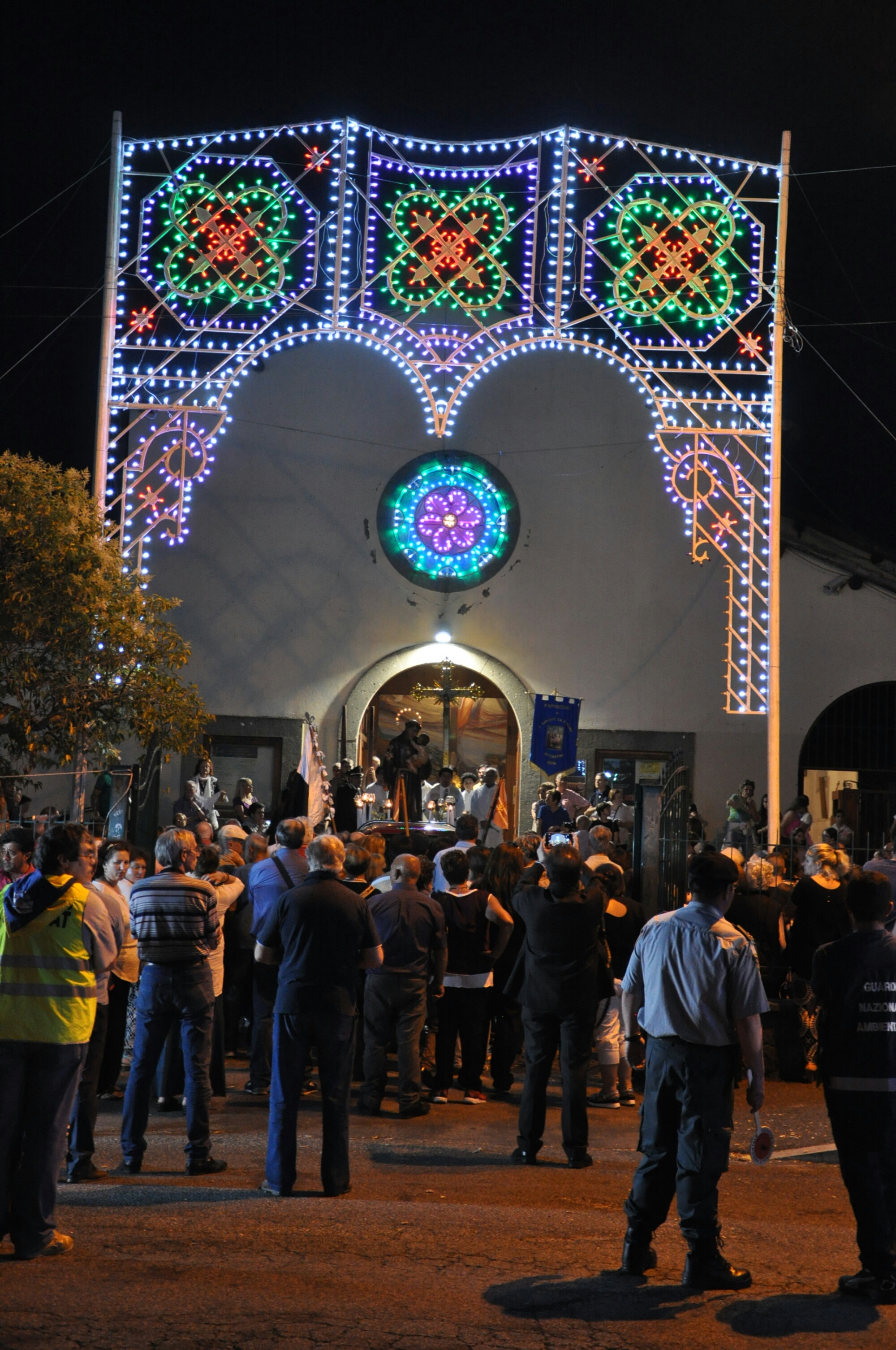 percorrendo la Salaria. Due successive sequenze di fuochi artificiali hanno concluso definitivamente la festa. Da notare l’assenza (o almeno così è parso) di rappresentanti della politica locale e delle istituzioni – eccezion fatta per i Carabinieri della locale Stazione anche con la presenza del Comandante, Luogotenente Fiumarella – e persino della Polizia Locale, con il traffico che è stato regolato dai membri di una associazione di protezione civile, la “Guardia Nazionale Ambientale”. Alessandro Pino