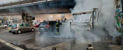 [ROMA] Rogo di autoveicoli sotto il cavalcavia della Tangenziale che sovrappasso lo Scalo San Lorenzo nel pomeriggio del 18 aprile.