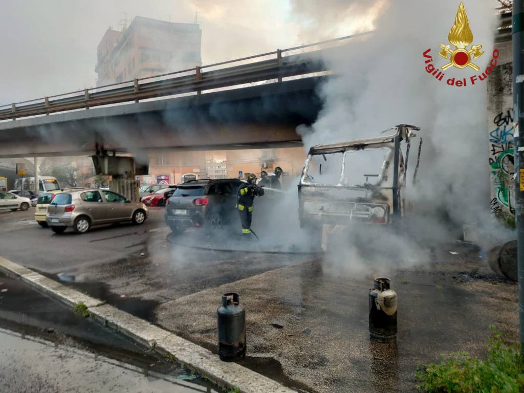 Ad andare in fiamme sono stati un camper (rimasto completamente distrutti) e quattro automobili. Sul posto sono intervenute due squadre dei Vigili del Fuoco con una autobotte e che hanno messo in sicurezza due bombole di Gpl. Fortunatamente non ci sono stati feriti.