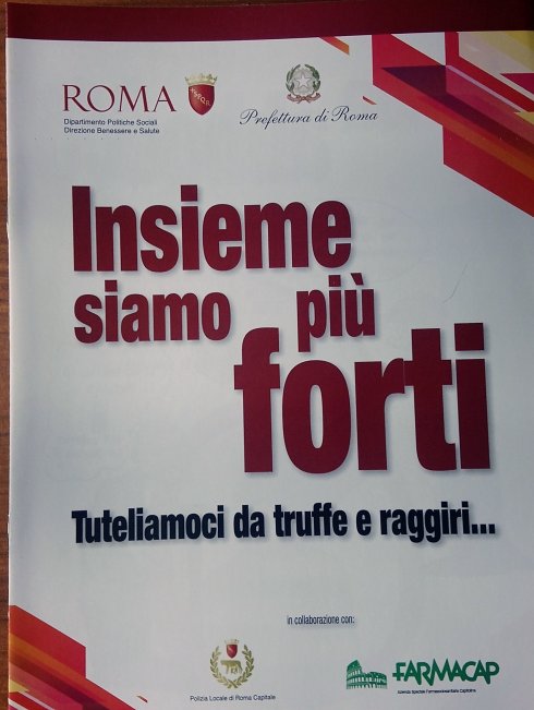[ROMA] Il fenomeno delle truffe agli anziani è sempre più diffuso e non passa giorno senza che arrivino segnalazioni anche dal territorio del Terzo Municipio. Si tratta di reati particolarmente odiosi specialmente perché compiuti contro persone indebolite dal peso degli anni e spesso facenti leva sulla naturale preoccupazione per i loro cari, come nel caso delle richieste di denaro per falsi incidenti o fantomatici prestiti in cui sarebbero coinvolti figli o nipoti (ovviamente all’oscuro di tutto) con tanto di complici al telefono che si spacciano per loro. Per mettere in guardia i nostri vegliardi da questo e altri tranelli scende in campo il corpo della Polizia Locale di Roma Capitale che ha organizzato nei centri anziani del Terzo Municipio una serie di incontri- intitolata “Insieme siamo più forti” – anche per farsi conoscere meglio dai loro frequentatori. Il progetto, che prevede anche la distribuzione ai partecipanti di un utile promemoria, nasce in collaborazione con il Dipartimento Politiche Sociali capitolino, la Prefettura di Roma e Farmacap. Gli incontri durano un paio di ore circa dalle 16 alle 18 e qui di seguito trovate il calendario dei prossimi con gli indirizzi:
