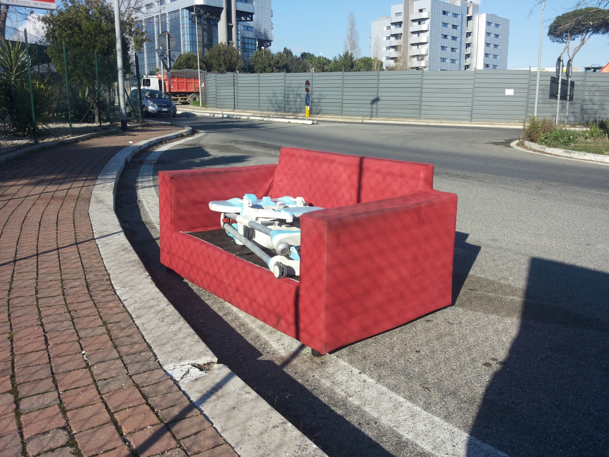 21 GenMa non nel senso di quartiere chic: semplicemente i soliti barbari che spadroneggiano ovunque hanno lasciato un divano in mezzo alla strada, proprio di fronte alla sede della Agenzia delle Entrate e al cantiere del Tempio Mormone.