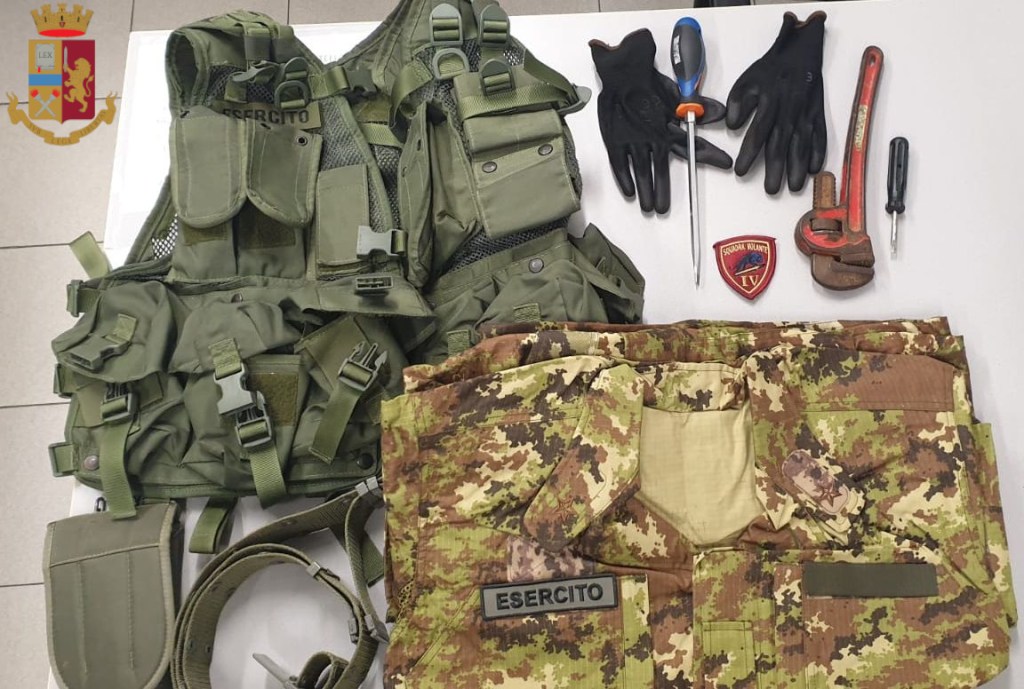 [ROMA] Tre nomadi domiciliati presso il campo nomadi di via dei Gordiani sono stati bloccati dalla Polizia dopo aver rubato all’interno di un veicolo e cercato di portarne via un altro in zona Tor Sapienza. Gli agenti delle Volanti erano intervenuti per una segnalazione in via Pio Joris poco dopo le due di notte del 17 febbraio: lì hanno trovato un uomo che alla presenza di due complici spaccava con una chiave inglese il vetro anteriore lato guida di una macchina parcheggiata. I tre vedendo la pattuglia sono fuggiti verso via di Tor Sapienza ma sono stati bloccati. Uno di loro ha gettato a terra una busta contenente indumenti e materiale militare (in foto), la cui provenienza al momento è sconosciuta. Addosso i tre avevano una chiave a pappagallo e due grossi cacciaviti. Una verifica successiva ha fatto scoprire che a un’altra macchina parcheggiata tra via Pio Joris e via Alamanni erano stati danneggiati il blocchetto di accensione e l’antifurto meccanico bloccasterzo probabilmente per un tentativo non riuscito di rubarla. Due dei fermati, maggiorenni, sono stati arrestati per furto aggravato e possesso ingiustificato di chiavi alterate o grimaldelli. Il terzo in quanto minorenne, è stato denunciato per lo stesso reato e riconsegnato alla madre. Alessandro Pino