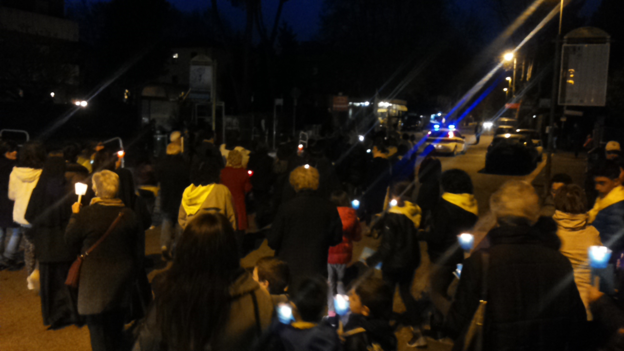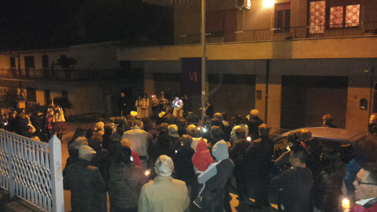 [ROMA] Quasi in contemporanea con la oceanica Via Crucis del Venerdì Santo in diretta televisiva dal Colosseo, così modaiola e caciaresca, si è svolta a Settebagni la sera del 7 aprile quella della parrocchia di Sant’Antonio di Padova: è stata caratterizzata da una atmosfera agli antipodi della kermesse televisiva, raccolta anche in senso numerico e fisico, con le dodici Stazioni vissute tutte nell’area tra il sagrato e il campetto degli scout per poi concludersi in chiesa, guidate dal parroco Don Ruben Gallegos.