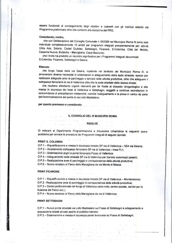 che sostituisca quello vetusto che scavalca il Fosso di Settebagni , dalle cui acque viene regolarmente sommerso durante gli allagamenti nemmeno tanto infrequenti, lasciando di fatto isolati i residenti della collina di Bel Poggio. Nulla a che vedere con la rivoluzione viaria dei sensi unici o con il sottopasso Fs, quindi. Sempre però del territorio di Settebagni si tratta, perché Bel Poggio di ess fa parte, tanto che i residenti votano nel seggio delle scuola Giovanni Paolo I e hanno la chiesa di S. Antonio da Padova come parrocchia di riferimento. Giova ricordare che Settebagni, per il terzo municipio è un po’ come il vallo di Adriano in Gran Bretagna per gli antichi romani: l’ultimo avamposto di Roma Capitale a Nord giunge fino a via di Valle Ricca, che segna il confine con il Comune di Monterotondo. In mezzo diverse località, come via di santa Colomba, Quattro Cancelli, Tor San Giovanni e Bel Poggio, che hanno nel quartiere il proprio riferimento. Fatto sta che alcuni residenti di “Settebagni – Settebagni” (anche e qui si rischia di scendere in quella specie di razzismo tra quartieri del tipo “ma lei è del centro o della provincia?”, se Lfosse che ora le provincie non esistono nemmeno più, sostituite dai comuni metropolitani) e il presidente dell’Associazione il mio Quartiere di Settebagni, preoccupati, si sono recati a piazza Sempione per assistere al Consiglio incriminato, quello del 14 gennaio. Prima dell’inizio della seduta però, parlando con alcuni consiglieri – Bureca, Proietti e lo stesso Dionisi che non ha lesinato uno scambio di battute con il portavoce dei cinque stelle, a suo giudizio reo di non aver ben spiegato la cosa (ma l’odg era chiaro, le vie indicate e la zona di riferimento pure ndr) – sono stati resi edotti sul reale oggetto dei lavori previsti, in località via di santa Colomba e Bel Poggio, appunto. Rassicurati che la cosa non riguardava “Settebagni – Settebagni”, le persone che erano accorse hanno lasciato l’aula, ritenendo forse che la cosa non li riguardasse, lasciando che l’iter si compisse senza un loro intervento.